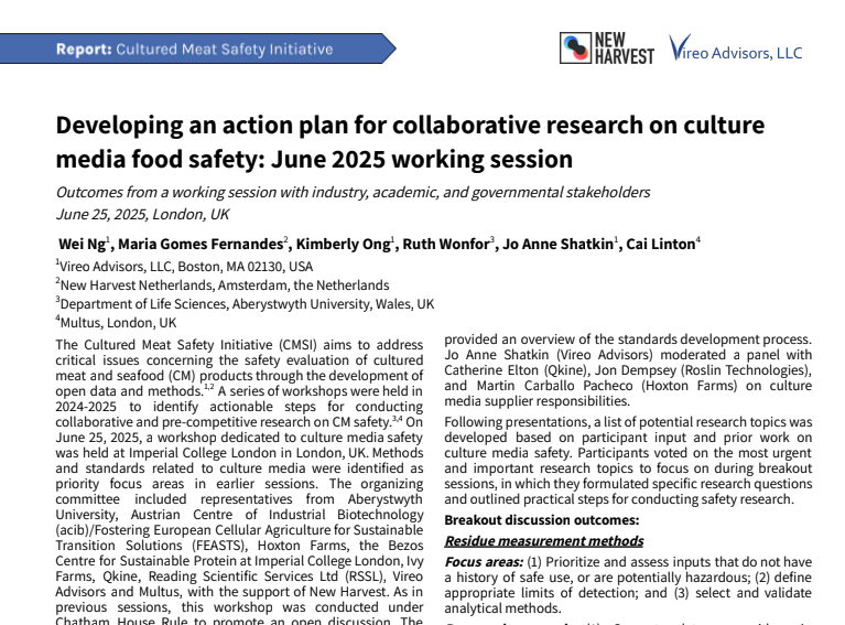 Developing an action plan for collaborative research on culture media food safety: June 2025 working session, UK